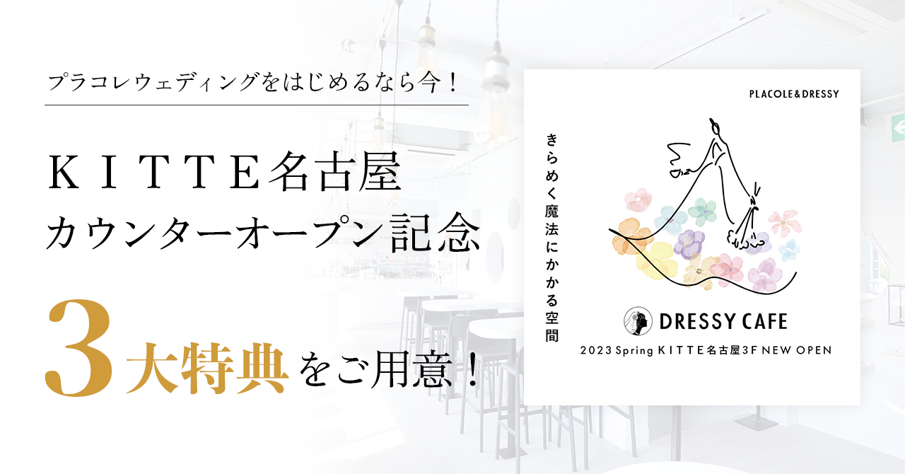 【PLACOLE WEDDING】KITTE名古屋に結婚式相談カウンターオープン決定を記念し、3大特典アリ特別キャンペーンを実施!
