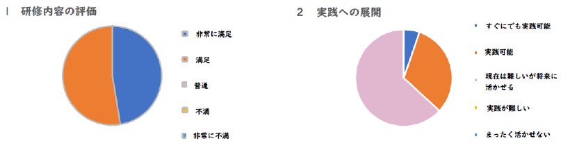 また、参加者から回収したアンケートにて、「研修内容の評価」項目において、「非常に満足」「満足」と回答した人が100%でした。