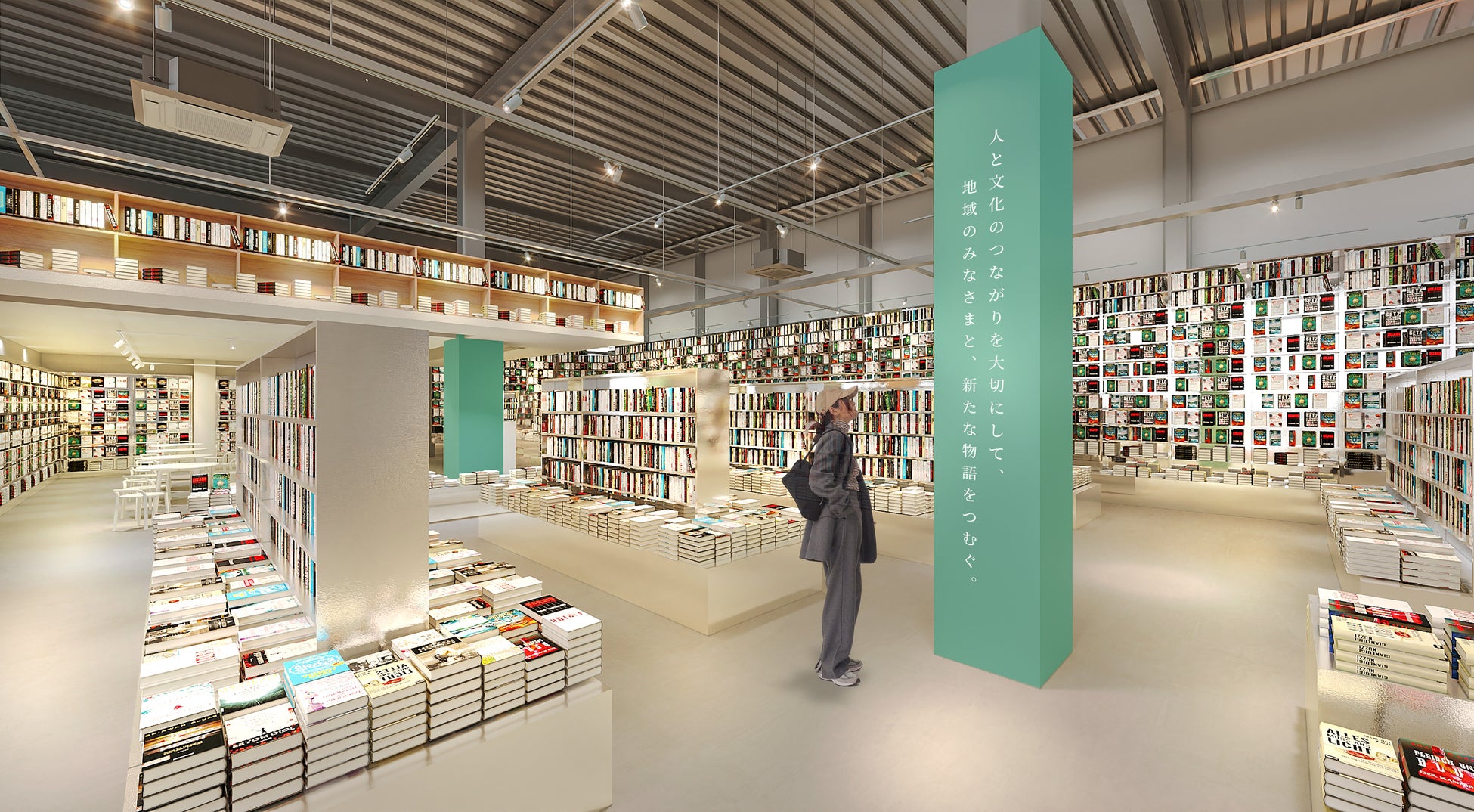 約5万冊の新刊、話題書、定番書をラインナップし、地域に必要な鮮度ある品揃えを提供します。また、店内には企画コーナーを常設し、地域の皆様が気軽に参加でき、賑わう仕掛けづくりを行います。例えば、地域の子供達に向け本を選書し紡いでいく企画や、地域のトピックを扱ったトークイベントなどを実施予定です。