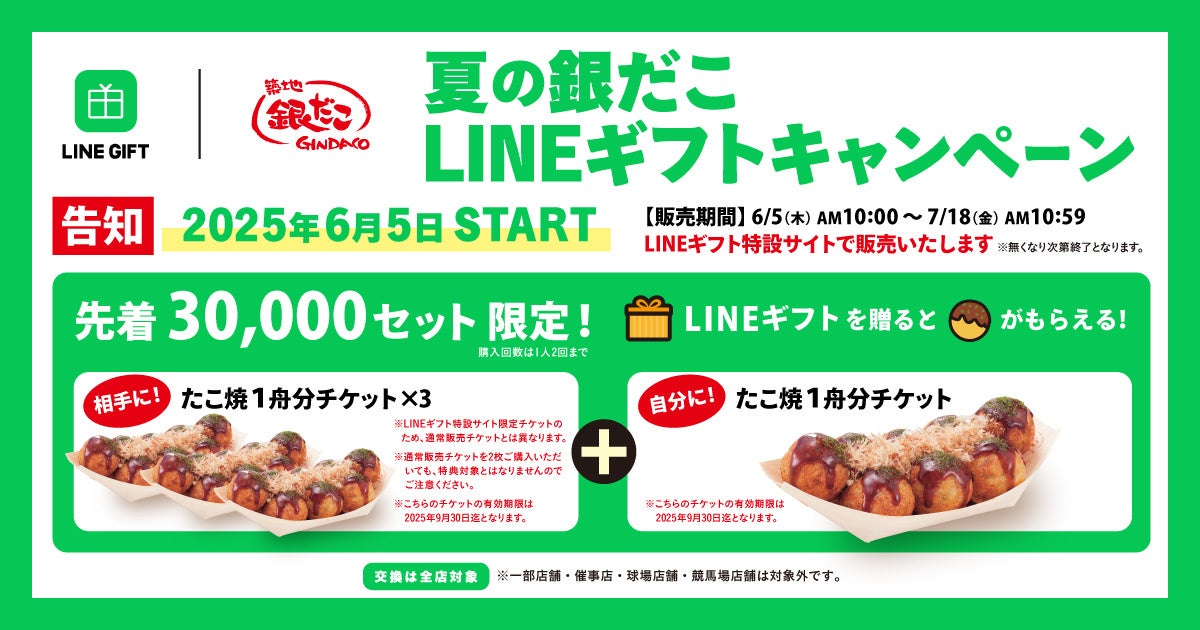 【 6月はLINEギフトで銀だこを! 】『 夏の銀だこLINEギフトキャンペーン 』6/5よりスタート!