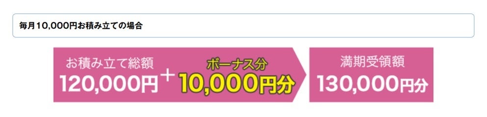 毎月一定額をお積み立ていただくと、1年後もしくは半年後の満期時にボーナス分をプラスして会員証カードにチャージし、小田急百貨店でご利用いただけるお買物カードとしてお渡しするシステムです。お積み立てはご予算にあわせて4コース。
