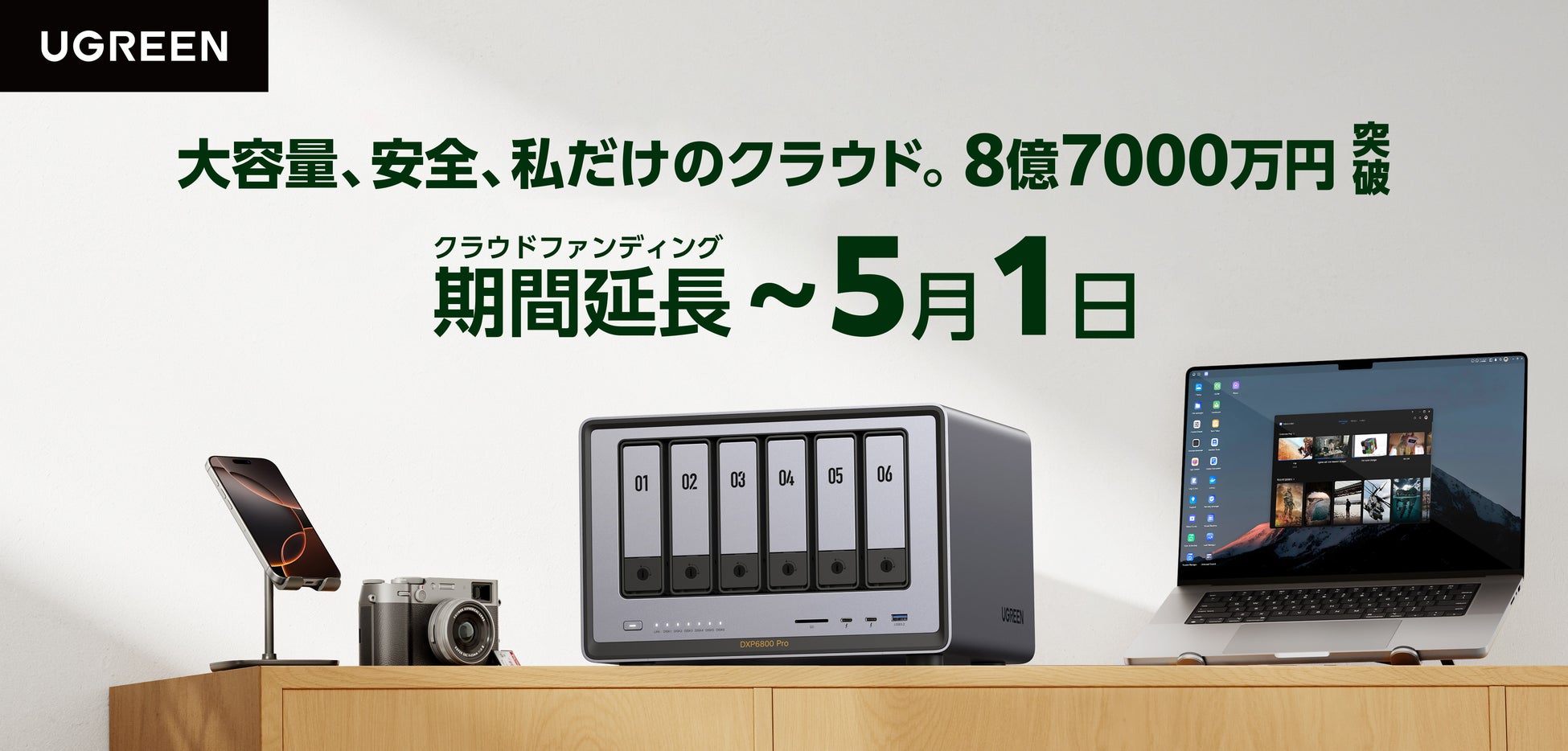 フォーカルポイント株式会社が、2025年2月14日10:00より開始した「UGREEN NASync DXPシリーズ」クラウドファンディングの期間を、2025年5月1日 23:59まで延長することを決定しました。
