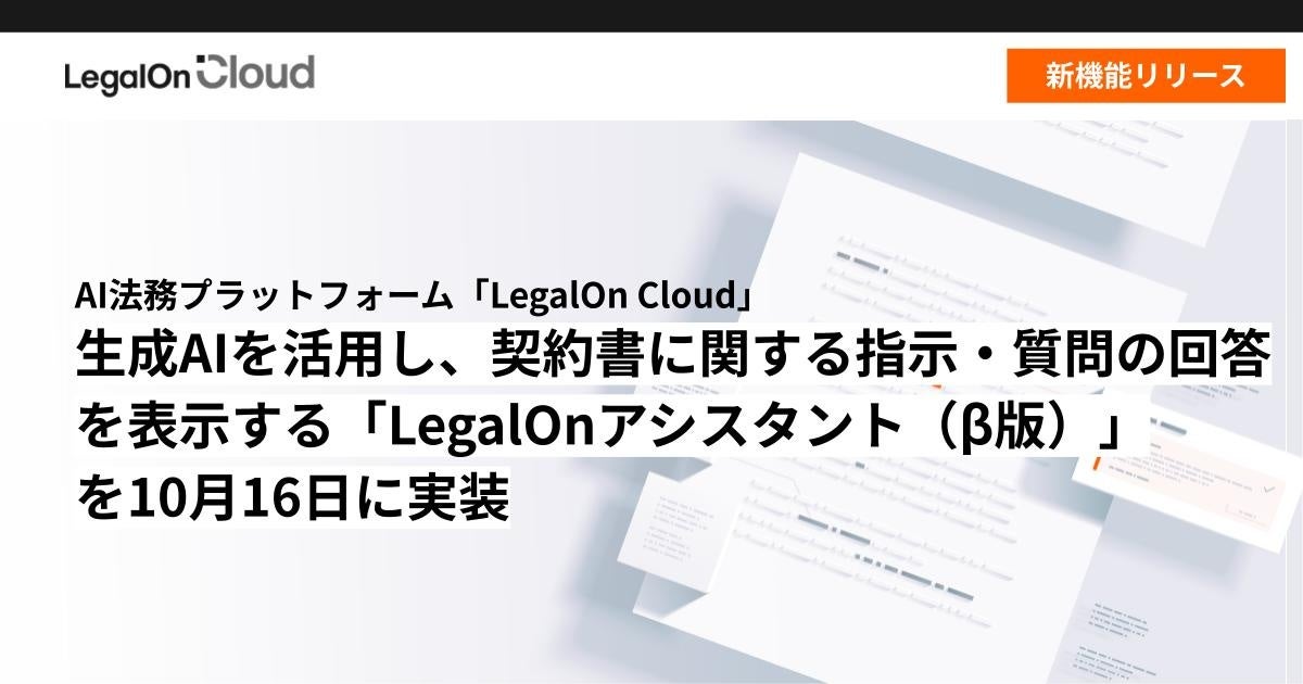AI法務プラットフォーム「LegalOn Cloud」、生成AIを活用し、契約書に関する指示・質問の回答を表示する「LegalOnアシスタント(β版)」を10/16に実装