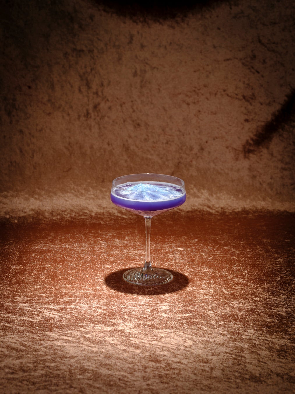 ハロウィンカラーの紫色をしたお花のシロップベースでどこか懐かしい味のノンアルコールカクテル
