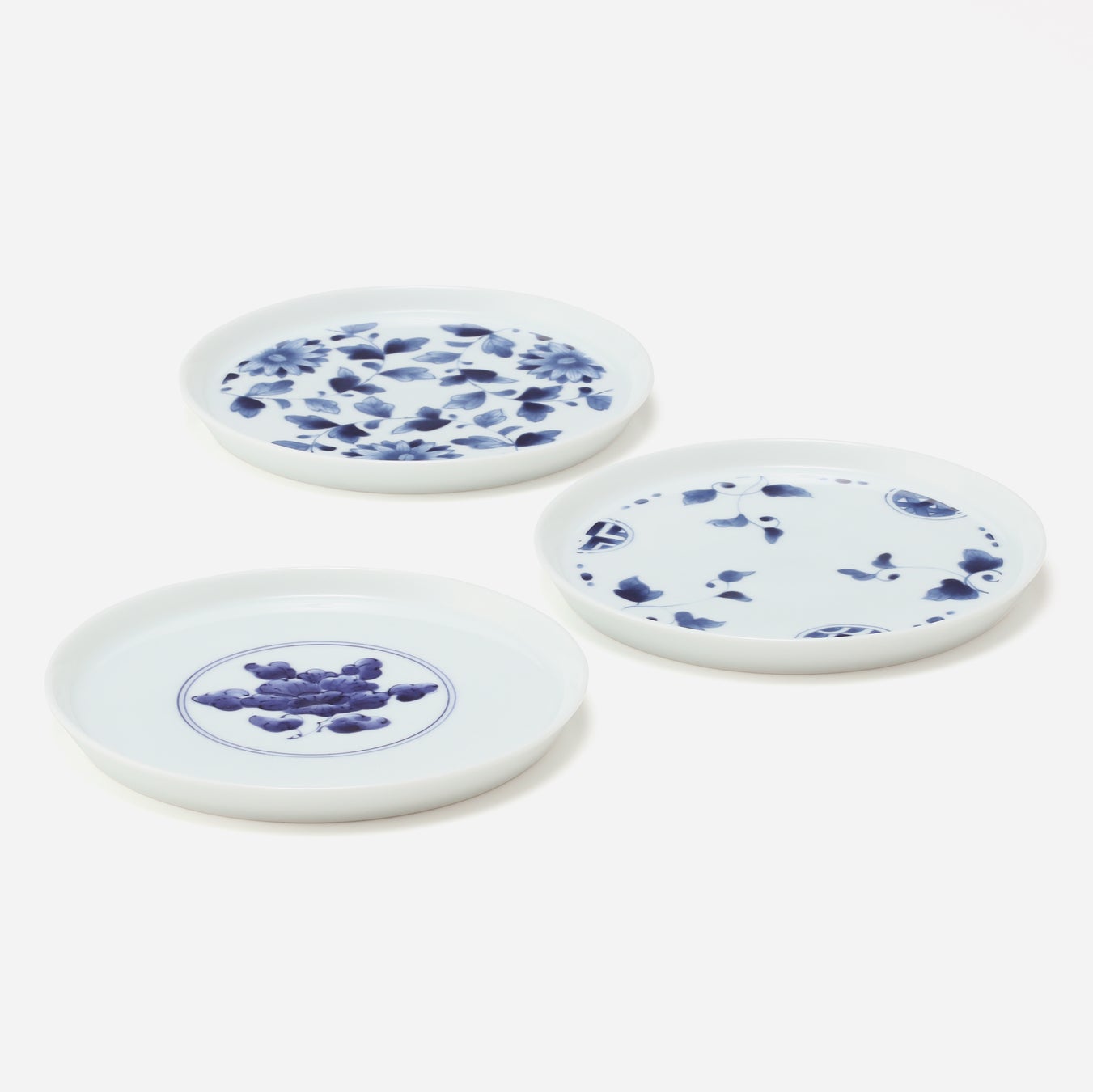 模様は、丸紋・唐草・牡丹と和食・和菓子にはもちろん、中華・飲茶などの雰囲気にもぴったりなおしゃれなプレートです。
