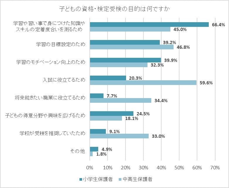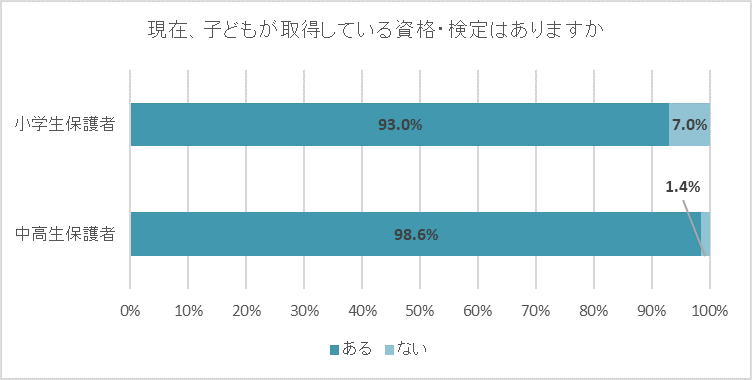 中高生では、約9割が資格・検定試験を受けた経験があることが明らかとなった。