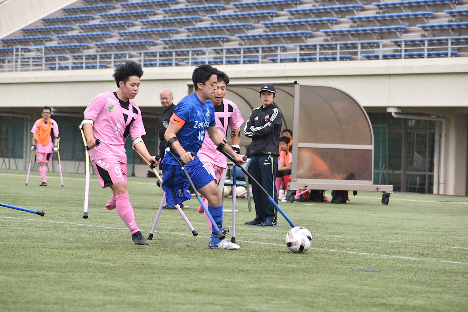 30年以上前にアメリカの負傷兵が松葉杖をついてプレーするサッカーを、リハビリテーションとして始めたのが競技のきっかけ。フィールドプレイヤーは下肢の切断者で、日常生活でも使われる松葉杖(ロフストランド・クラッチ)をついてプレーし、GKは主に上肢を切断しており、片腕でプレー。フィールドプレイヤー6名とGK1名の7人制サッカー。日本には2010年に導入され、日本代表は2018年メキシコワールドカップで過去最高の10位、2022年トルコW杯では11位になるなど、近年実力を伸ばしている。