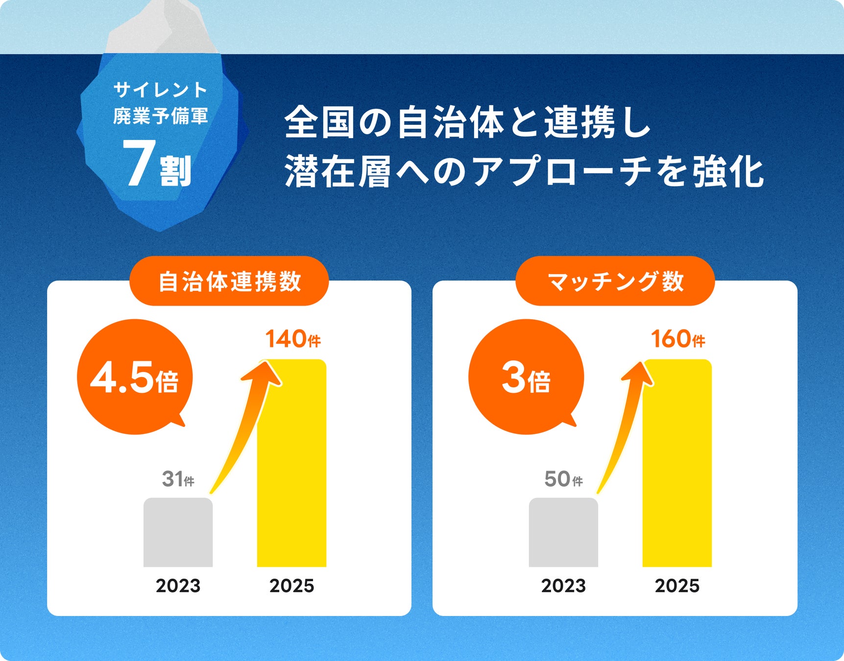 こうした背景を踏まえ、relayは2020年のサービス開始以降、全国の自治体と連携し、まだ表面化していないサイレント廃業予備軍へのアプローチを進めてきました。