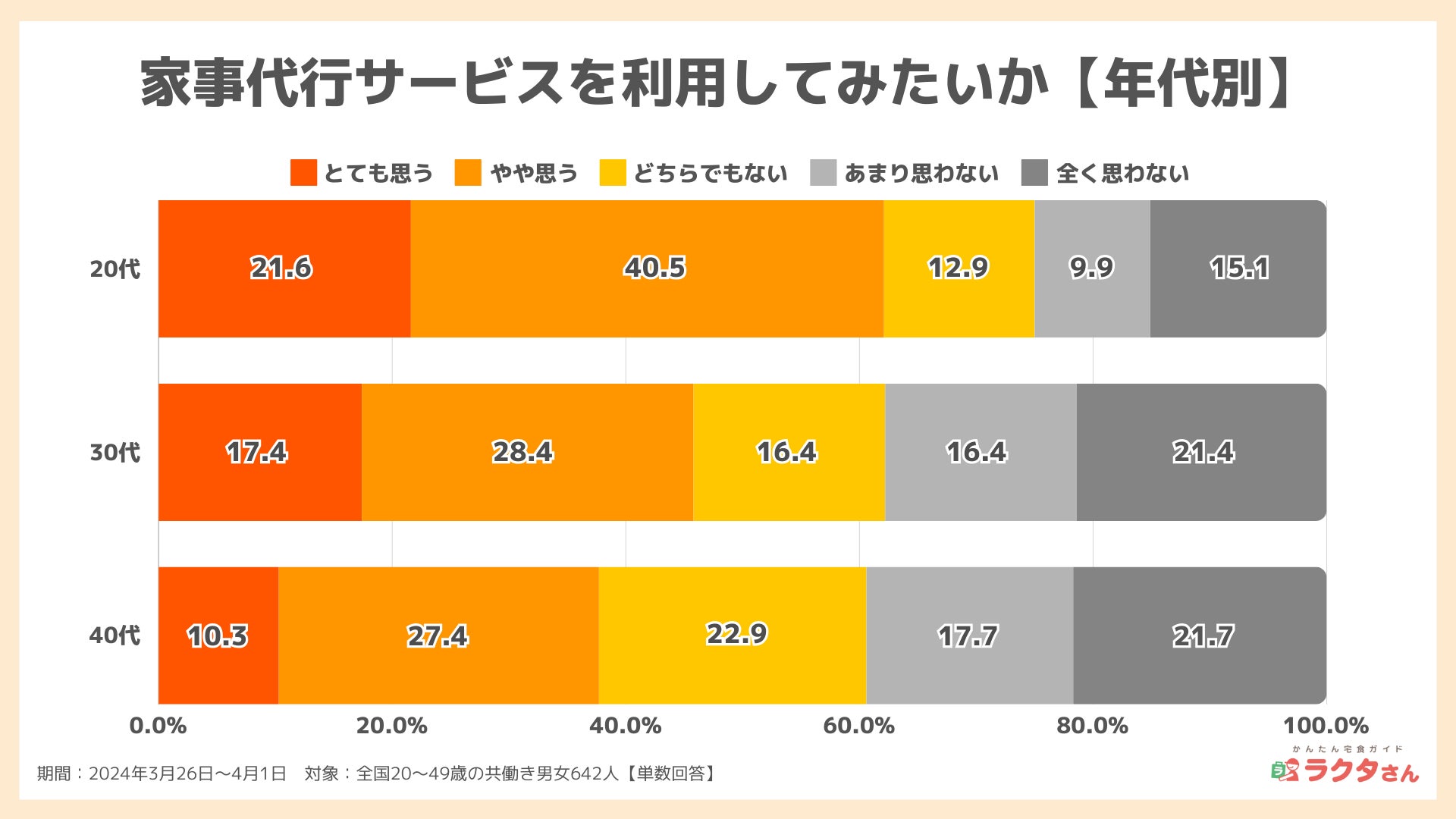 家事代行サービスを利用してみたい人が49.6%、若い人ほど利用意向が高い傾向