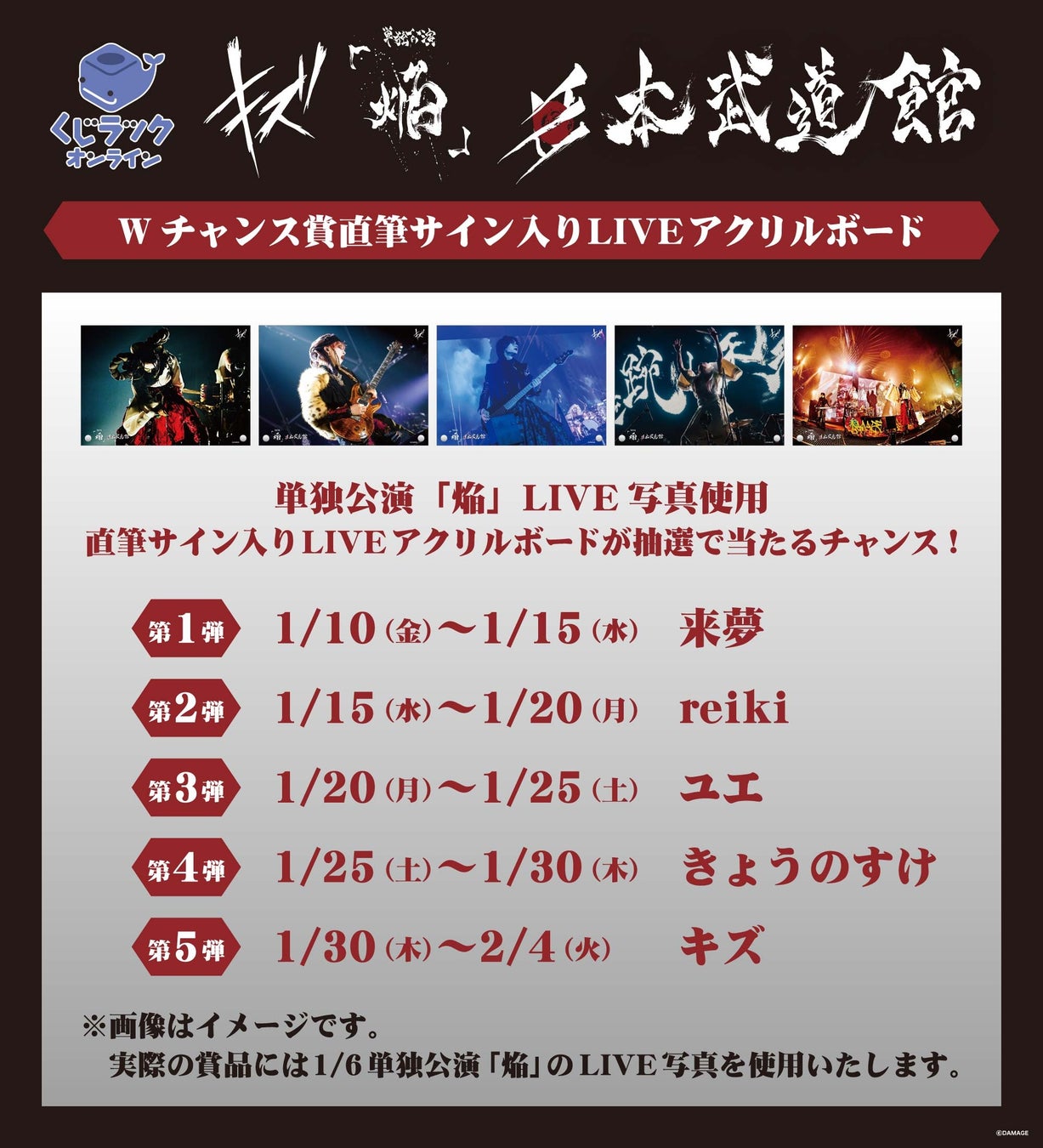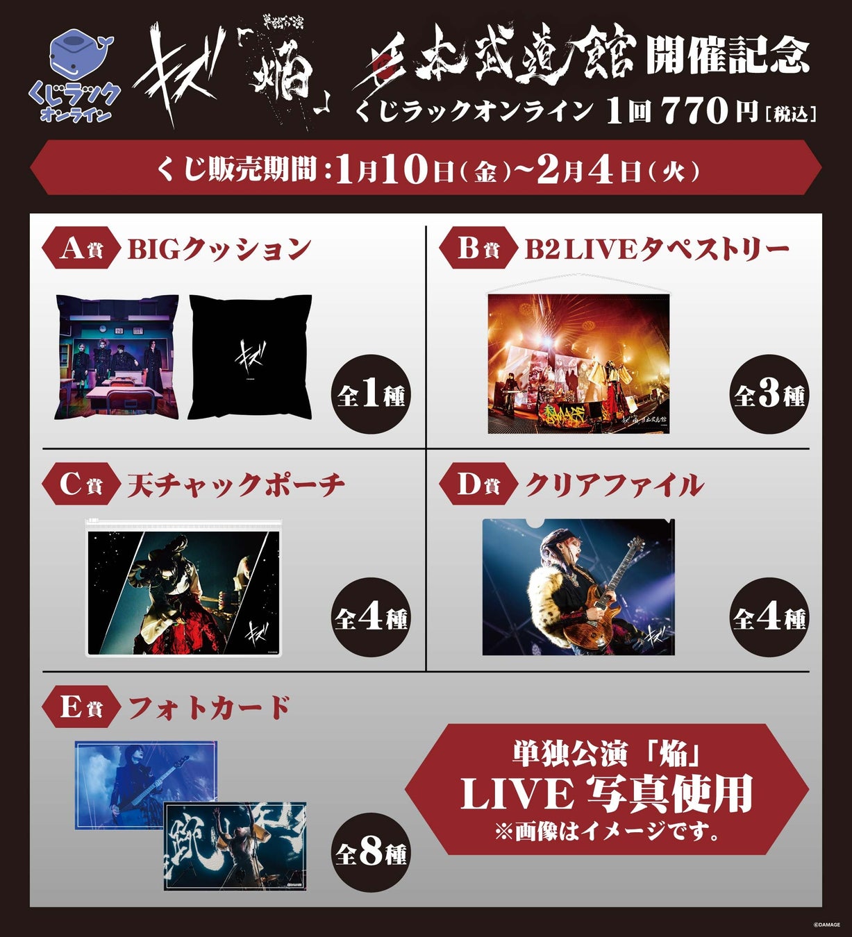 日本武道館 単独公演「焔」開催記念!『キズ』のオリジナル限定グッズが「くじラックオンライン」に登場!