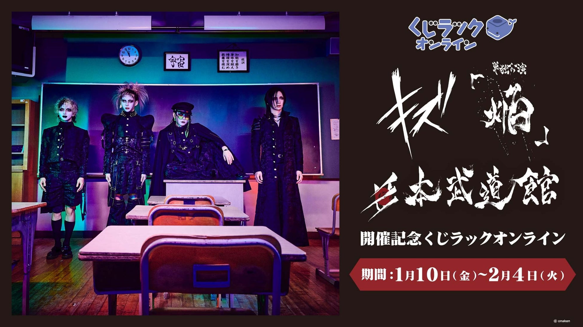 カルチュア・エンタテインメント株式会社は、ヴィジュアルロックバンド『キズ』とコラボレーションした、ハズレ無しでオリジナルグッズがゲットできるオンラインくじ「くじラックオンライン」を2025年1月10日(金)より販売いたします。賞品はA賞~E賞で、実際の賞品には単独公演 『焔』 2025.1.6 日本武道館 のLIVE当日に撮影した写真を使用します。さらに、くじ1枚ご購入ごとにWチャンス賞の抽選が行われ、当選した方は特別な賞品が獲得できます。