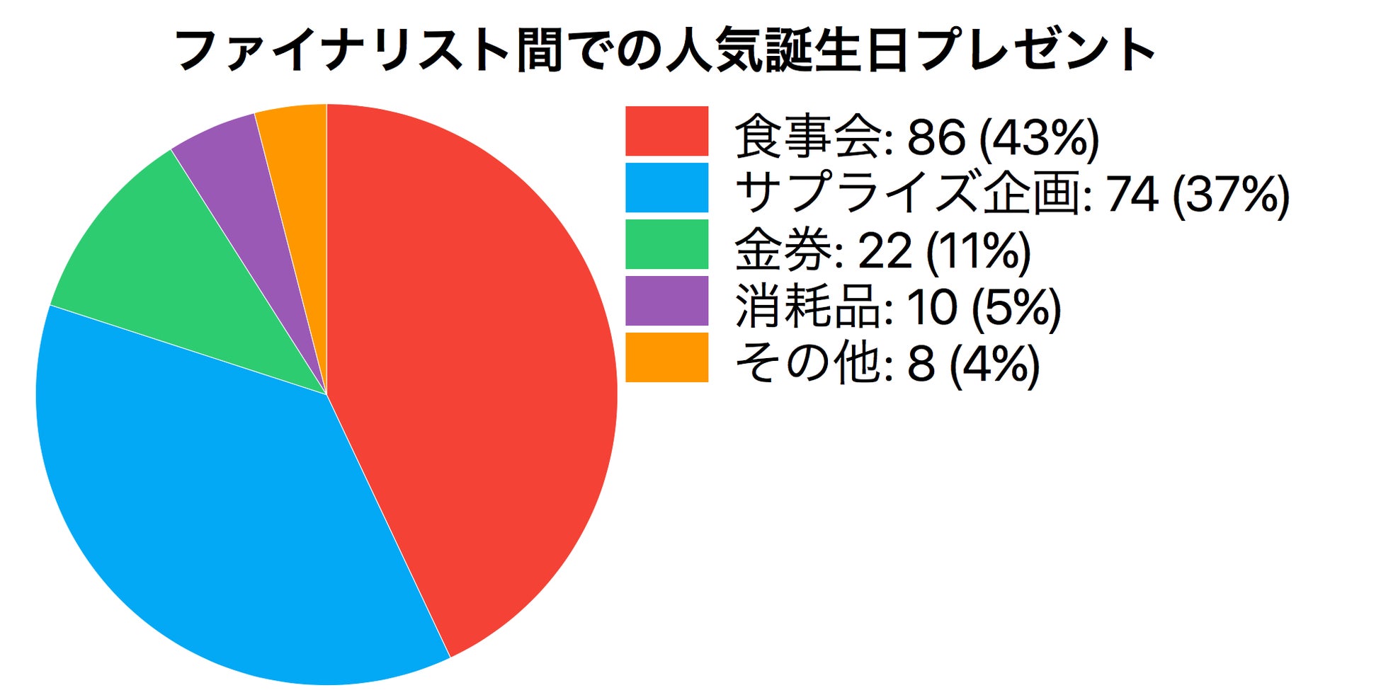 - ちなみに今回調査した誕生日プレゼントの平均予算は4000円前後でした