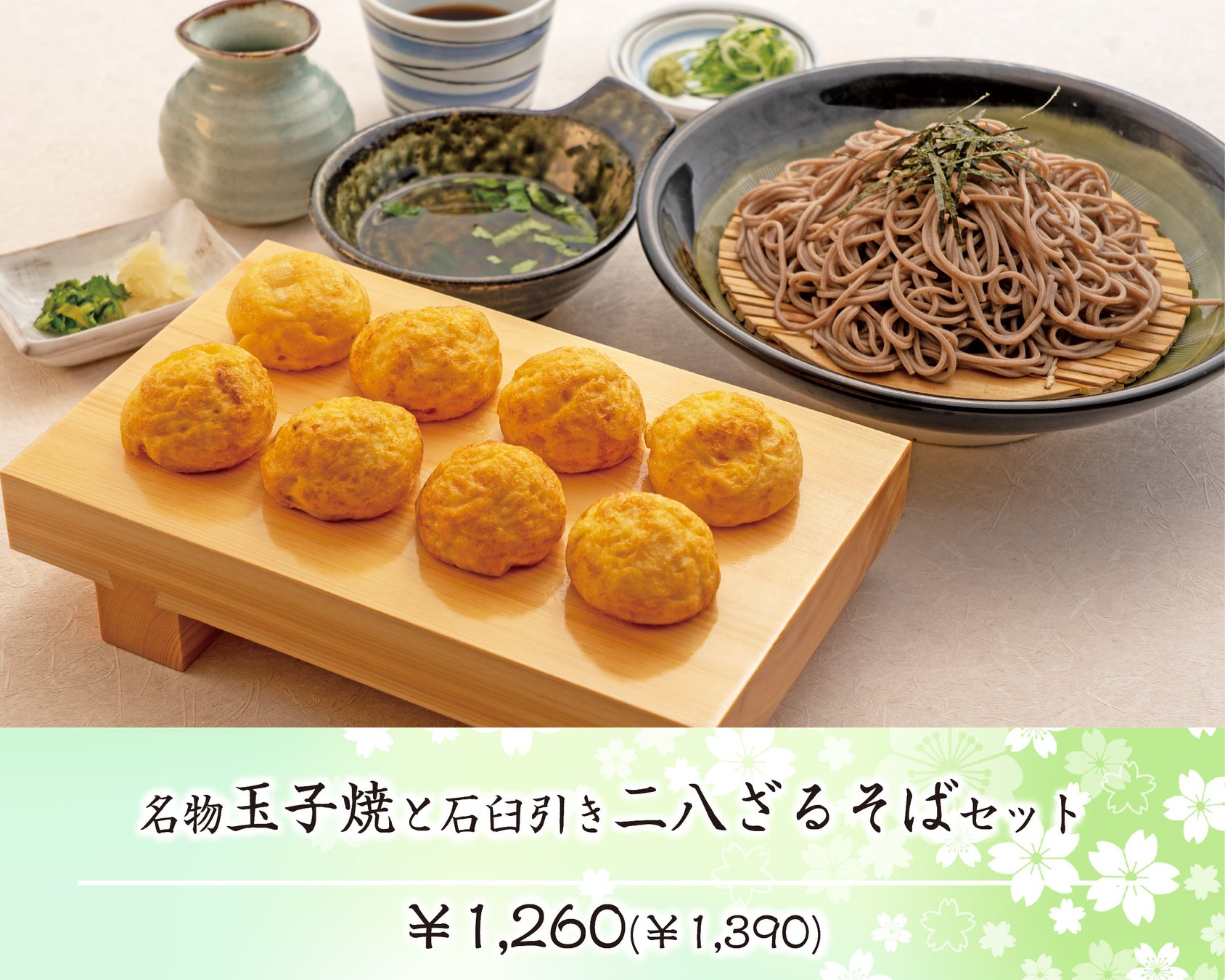 ●名物玉子焼と石臼引き二八ざるそばセット 1,260円(税込み1,390円)