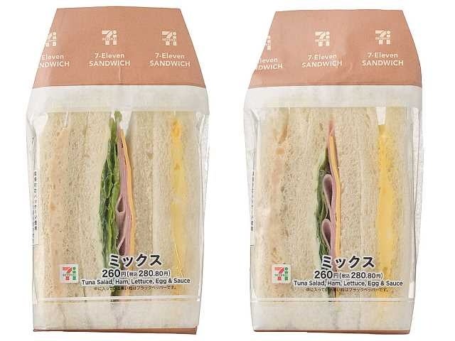 これまでのセブン‐イレブンのサンドイッチの特長であるくちどけの良さやしっとり食感を残しながら、さらに美味しい商品をお客様にお届けしたいという想いから、パン生地を中心としたリニューアルを行い、より「ふんわり」「しっとり」とした食感のパン生地を開発することができました。また、「1組ガブっ!と相盛サンド」は、忙しい朝などでもしっかりと食事をとってもらいたいという想いも込められた新シリーズです。ひとくちで2種類の具材をお楽しみいただける新しい商品を、ぜひお試しください。