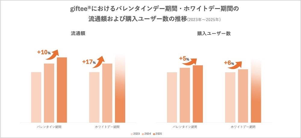 【2025年バレンタイン速報値】流通額売上は2024年同期比で+10%、ユーザー数+5%と伸長