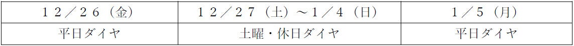 なお、大晦日の深夜から元旦にかけての延長運転及び終夜運転は実施いたしません。