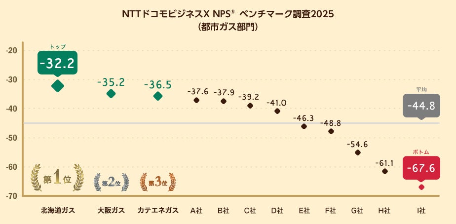 NTTドコモビジネスX株式会社(旧:NTTコム オンライン、本社:東京都品川区、代表取締役社長:稲葉 秀司、以下NTTドコモビジネスX)は、都市ガスを対象にNPSベンチマーク調査2025を実施しました。この結果、最もNPSが高いのは北海道ガスとなりました。