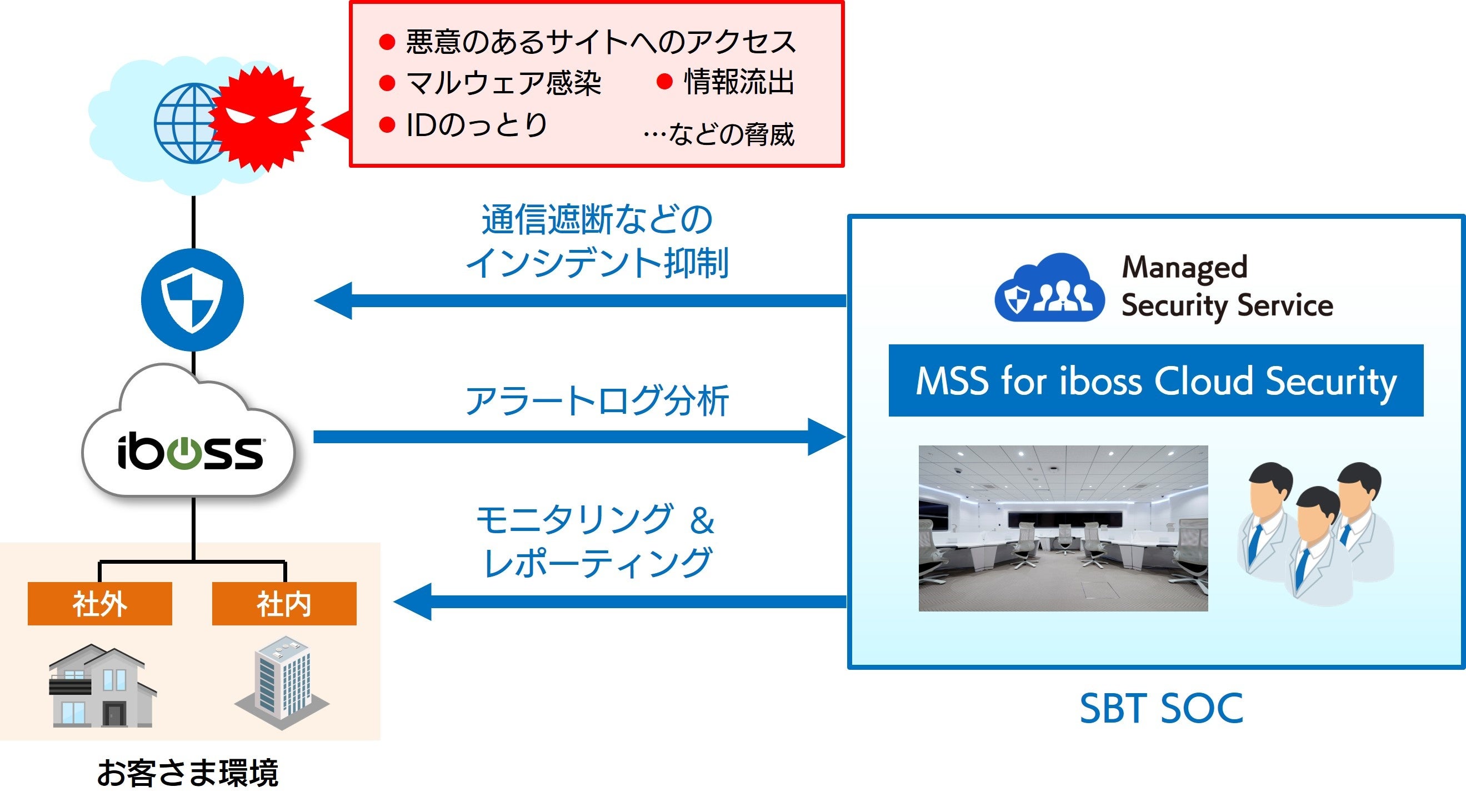 SBテクノロジー株式会社(本社:東京都新宿区、代表取締役社長 CEO:阿多 親市、以下「SBT」)は、ゼロトラストクラウドセキュリティを提供するiboss, Inc.(本社:米国マサチューセッツ州、創業者 兼 CEO/CTO:Paul Martini )のクラウド型セキュアWebゲートウェイ「iboss Cloud Platform、以下「iboss」」に対応したセキュリティ監視サービス(Managed Security Service)の「MSS for iboss Cloud Security、以下「本サービス」」を開発し、iboss, Inc.の国内販売代理店である SB C&S株式会社(本社:東京都港区、代表取締役社長 CEO:溝口 泰雄、以下「SB C&S」)を通じて、2022年1月24日より提供を開始します。