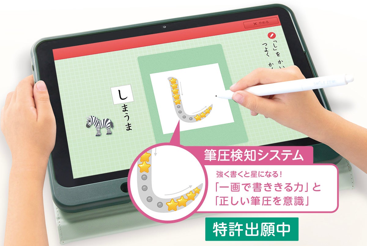 筆圧検知システムで、初めての文字学習でも「正しく書ける」