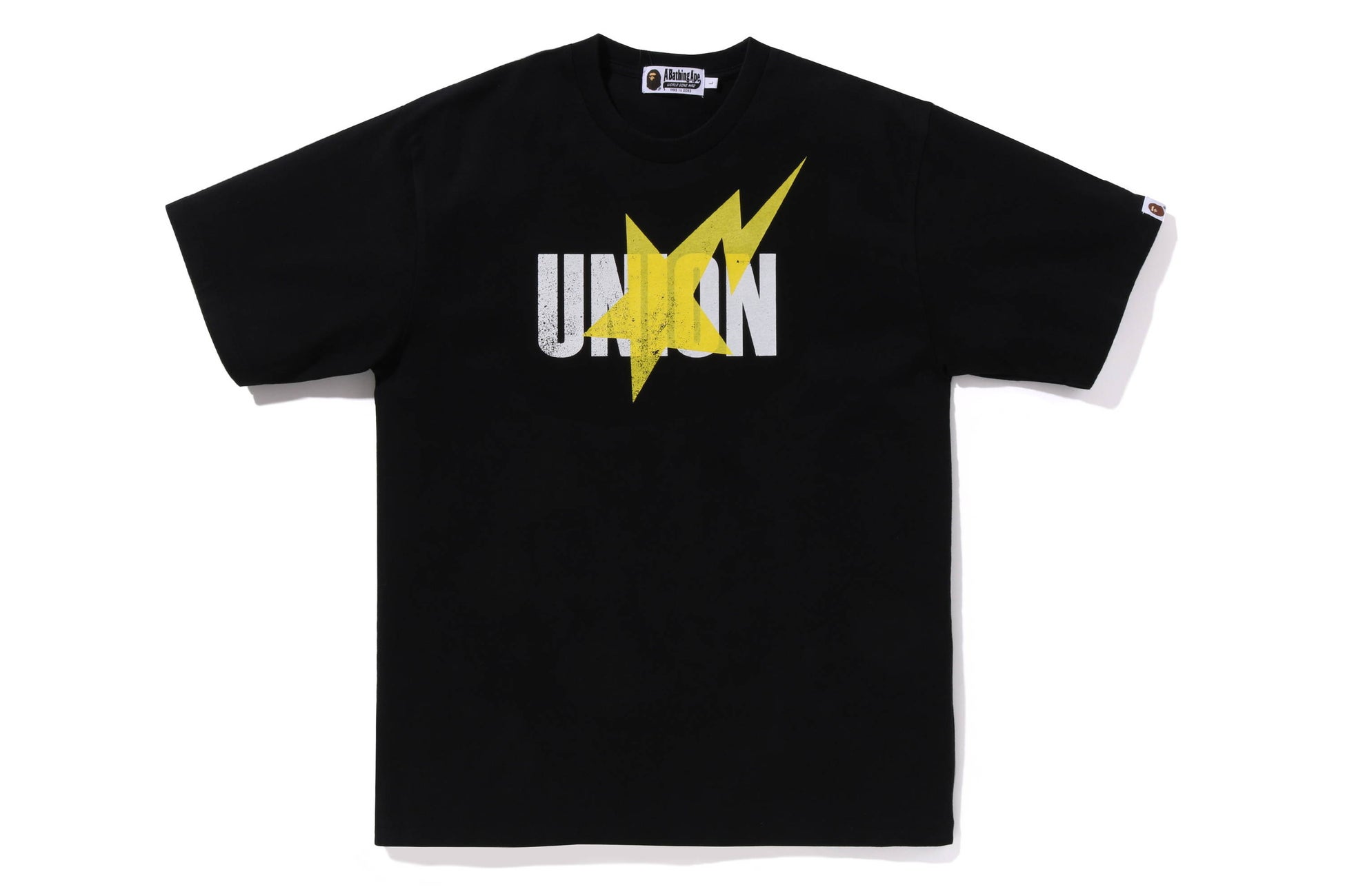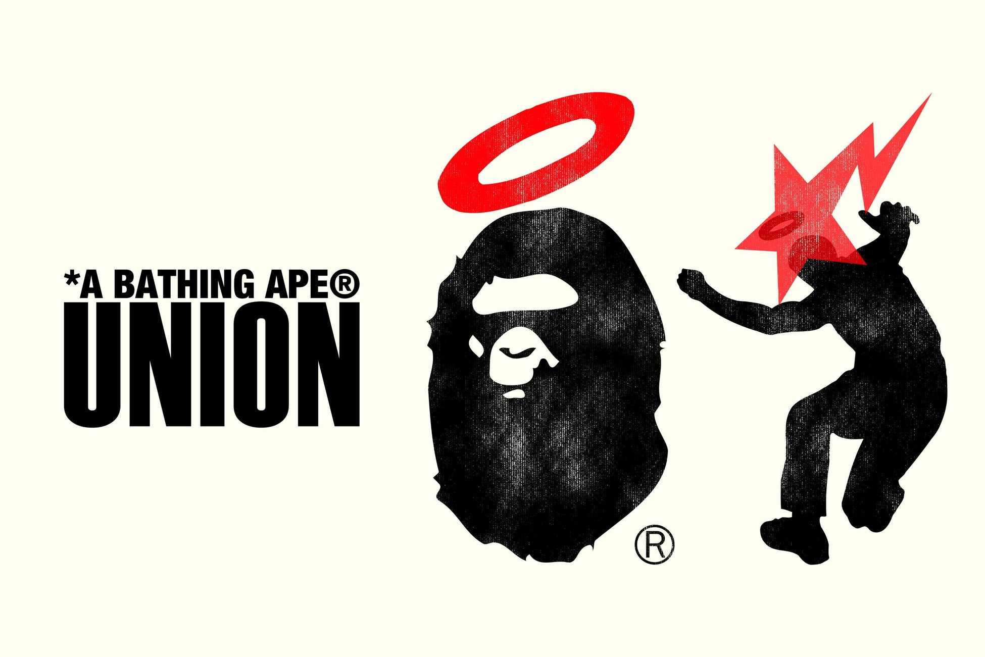 2021年以来、2度目のコラボレーションとなる今回は、BAPE®︎の「APE HEAD」とUNIONの「FRONTMAN」という両ブランドのアイコンを特別にアレンジ。BAPE®︎のスターモチーフ「STA」と「FRONTMAN」の頭の上にある光輪をチェンジして、ユニークかつ今回だけの希少なアイコンが誕生。