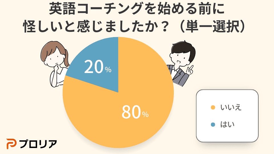 調査結果によると、英語コーチングを始める前に「怪しい」と感じた方は20%でした。