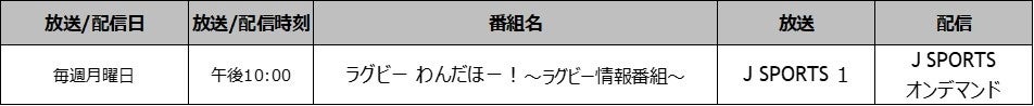 さらに、大会期間中の「ラグビー わんだほー! ~ラグビー情報番組~」では、毎週月曜に試合ハイライトやレビューをお届けします。