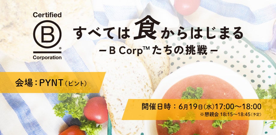 「B Market Builder Japan」主催のイベントが6月19日に開催決定!「すべては食からはじまるーB Corp™️たちの挑戦ー」