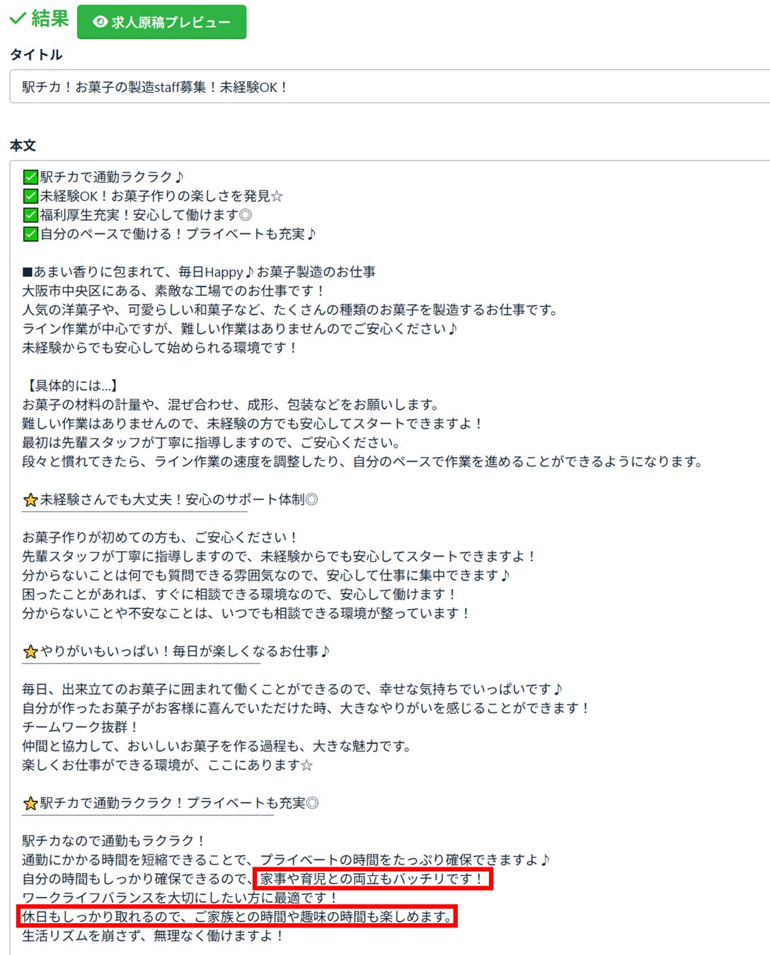 さらに、誰でも一定のレベルの求人原稿を作成することが可能になるため、担当による質のバラつきも軽減できます。