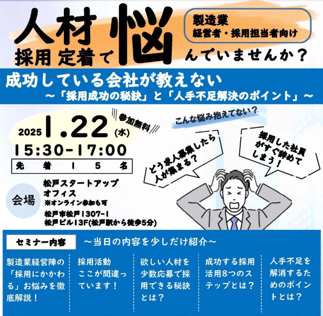 【市主催セミナー】成功している会社が教えない~「採用成功の秘訣」と「人手不足解決のポイント」~