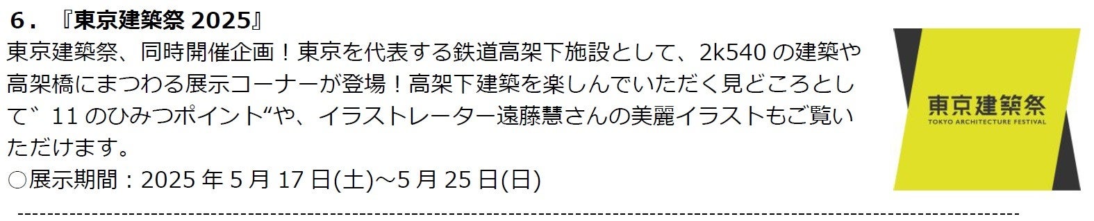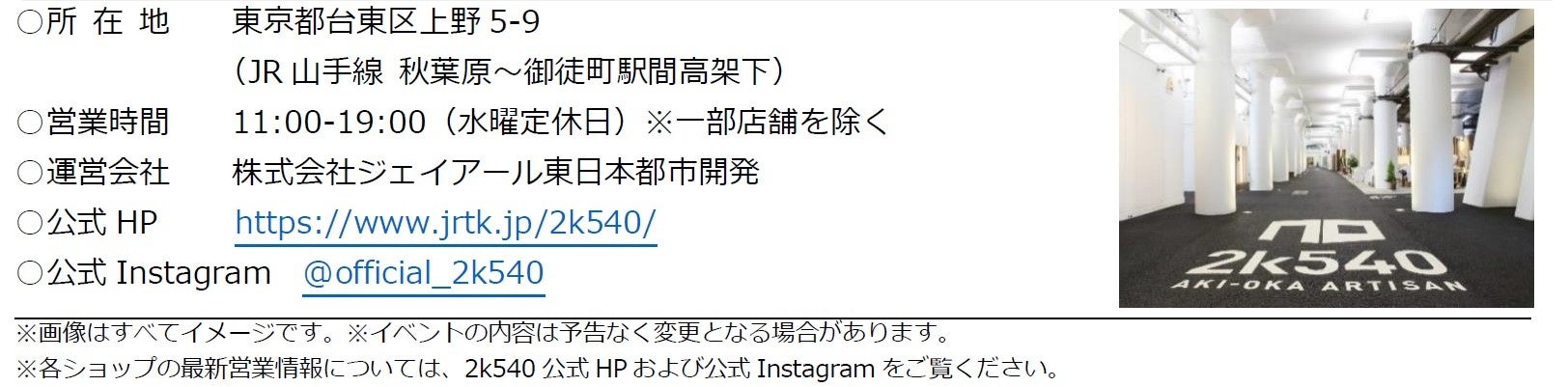 ・開催場所:2k540 AKI-OKA ARTISAN(東京都台東区上野5-9/ JR山手線 秋葉原~御徒町駅間高架下)
