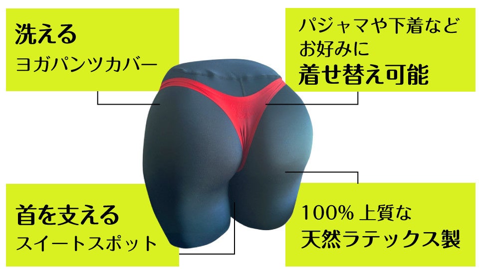 これまで過去2回のクラウドファンディングにおいて大成功を収めてきた「おしり枕」シリーズより、待望の最新作【Buttress Pillow3】(バットレスピロー3)が登場します!ファンから届いた「より大きく」「もっとグラマラスに」というリクエストに応えて、従来より太ももを長く寝心地もアップ。シリーズ最大級のボリューミーなサイズ感を実現しました。素材には「高い反発力」と「ヘタりにくい耐久性」が特徴のラテックスを使用しています。また、横向きで寝るときには肩と首が90°の角度になるよう設計しているなど、快適性にもこだわり抜き、使い心地も抜群。あなただけのお尻、心ゆくままにお楽しみください。