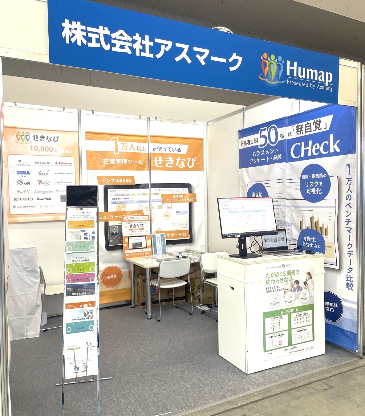 Humapのブース【 東7ホール 小間番号:W13-12 】では、在席管理ツール「せきなび」や ハラスメント&コンプラ調査「CHeck」のアンケート画面などを実際にご覧いただけるデモ機をご用意してお待ちしております。