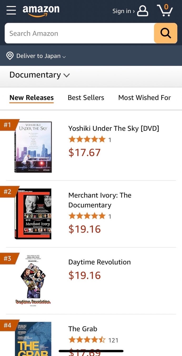 映画『YOSHIKI:UNDER THE SKY』 DVD/Blu-ray 米国での発売決定 米Amazon プレオーダー開始早々 チャート1位に