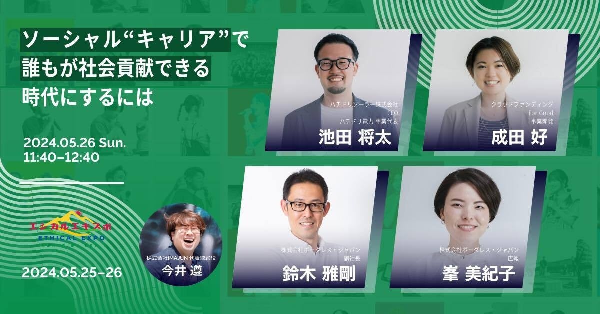 株式会社ボーダレス・ジャパン(本社:福岡県福岡市、代表取締役社長:田口 一成、以下「ボーダレス」)は、2024年5月25日(土) ・5月26(日)に渋谷ストリームホールで開催される「エシカルエキスポ2024」に出展および登壇することをお知らせします。ETHICAL PLAYER CONTESTでは、副社長の鈴木が審査員を務めます。