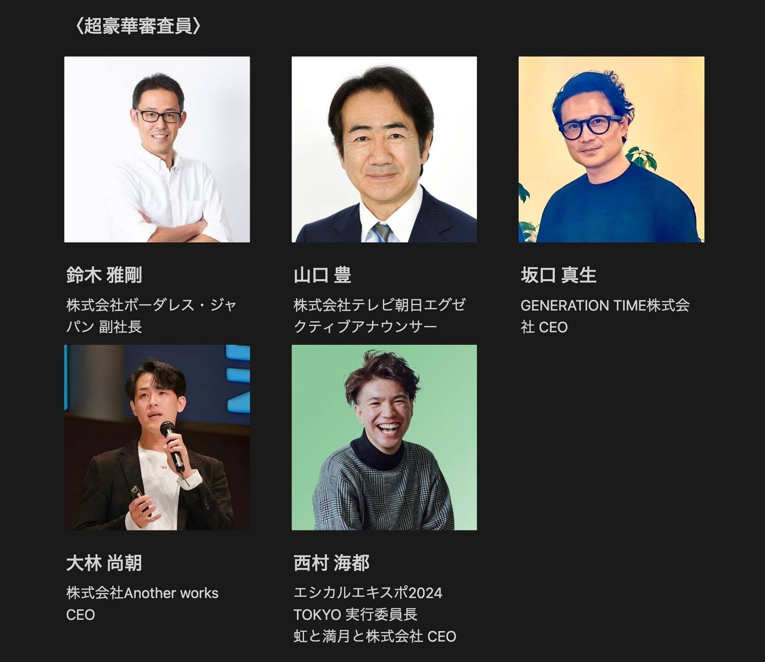 エシカルエキスポで開催される、ファイナリスト6名によるピッチコンテストにメンター・審査員として協力しています。