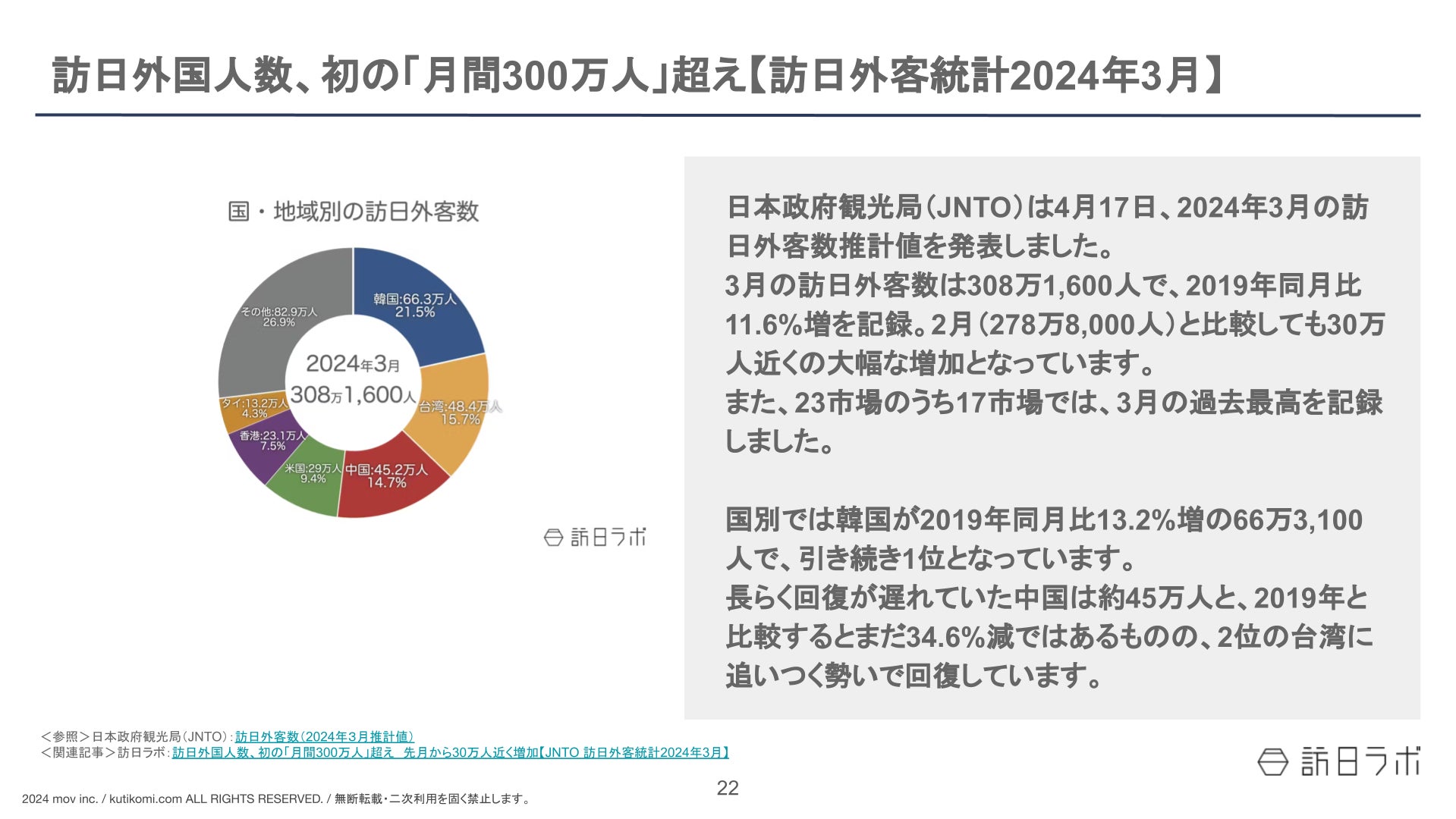 訪日外国人数、初の「月間300万人」超え:観光・インバウンドの最新動向がわかる!インバウンド情報まとめ「2024年4月」を訪日ラボが公開