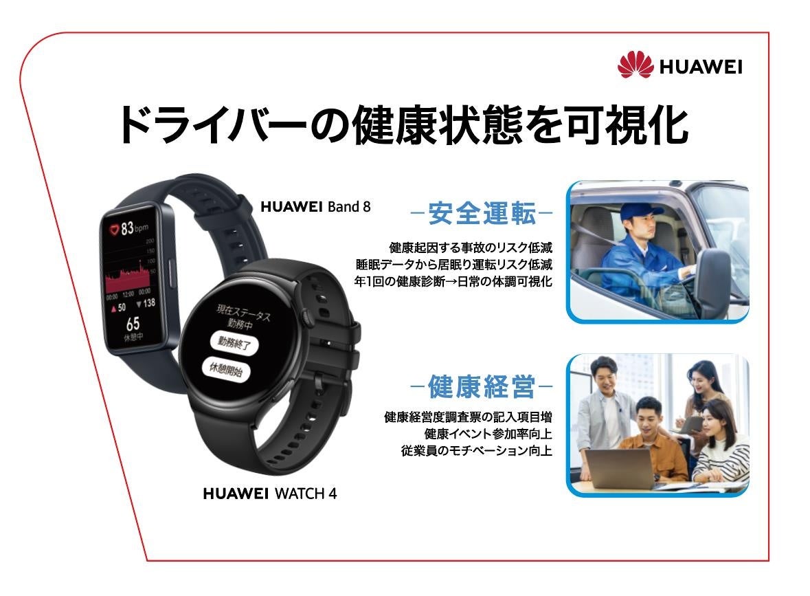 ファーウェイ・ジャパンは物流業界で働く人の事故リスクを解決する一つの方法として、ウェアラブル端末を使用することを推奨しています。ウェアラブル端末を活用することで、社員の健康状態を可視化することが可能となり、物流、建設現場など様々なシチュエーションにおいて、事故リスクの低減につながることから、従業員の安全管理を実現できると考え参加します。