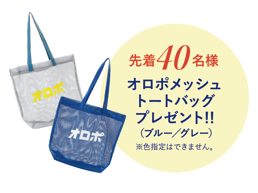5.MEGLY Starter Kit購入者 先着40名様*⁴へ「オロポメッシュトート」をプレゼント!