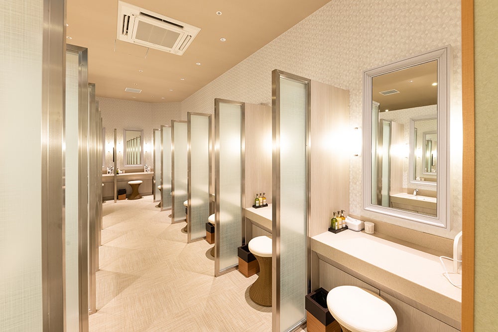 脱衣所内の全パウダールーム※に配置!サウナ間や入浴後の保湿&引き締めケアとしてご使用いただけます。