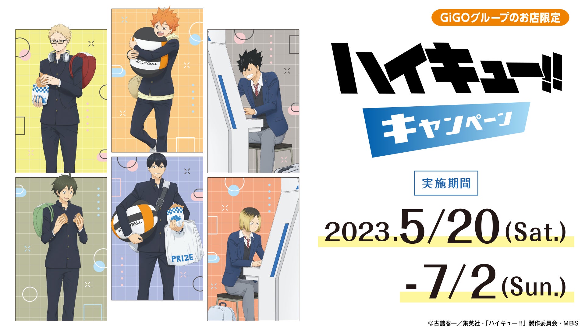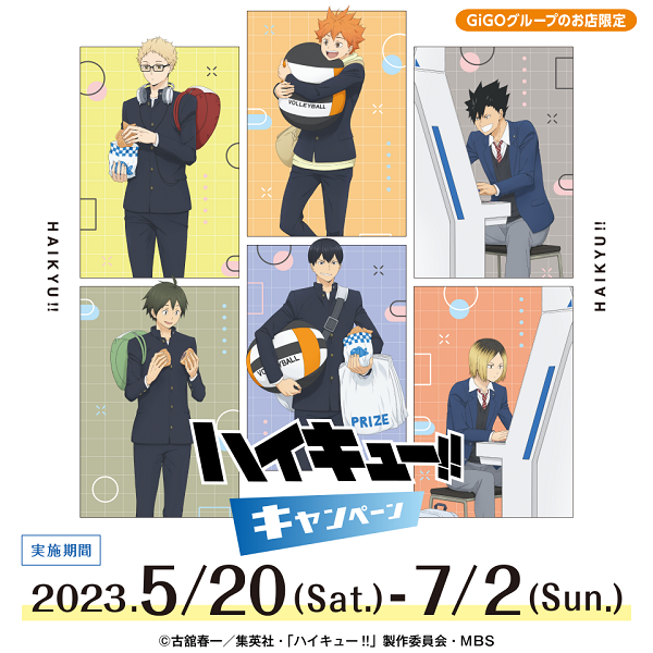 株式会社GENDA GiGO Entertainmentは、GiGOグループのお店におきまして、アニメ「ハイキュー!!」とコラボレーションした、『ハイキュー!! キャンペーン』を実施いたします。本キャンペーンは『ハイキュー!!』の景品が対象となります。