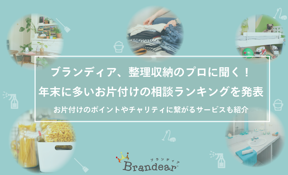 BEENOS株式会社(東証プライム 3328)の連結子会社で、プレラブド(Preloved=大切に使われた)なアイテムをサステナブルな循環に繋げるブランド品買取サービス「ブランディア」を運営する株式会社デファクトスタンダード(本社:東京都大田区、代表取締役社長:仙頭健一、以下「デファクトスタンダード」)は、人気の整理収納アドバイザーに聞く、年末に多いお片付け相談ランキングを発表いたしました。あわせて、お片付けのポイントや、お片付けがチャリティにつながるサービスをご紹介いたします。これから本格的に大掃除に取り組むみなさまにお役立ていただければ幸いです。