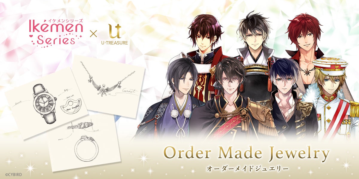 このほどのサービスは専用フォームにてお好きなキャラクターと、指輪・ネックレス・ピアス・イヤリング・ブレスレット・腕時計などのアイテムをお選びいただき、お客様のご要望を基にデザイナーがデザインを提案させていただく、世界でたったひとつのジュエリーを製作できるオーダーメイドサービスです。イケメンシリーズ8作品からお好きなキャラクターやモチーフ選ぶことができ、デザインのご提案からお見積もりまでは無料で行います。具体的なイメージがなくても、お好みの雰囲気やライフスタイルなどを参考に、豊富なデザイン例を用意してご提案いたします。オンライン及びユートレジャーコンセプトストア池袋で取り扱います。