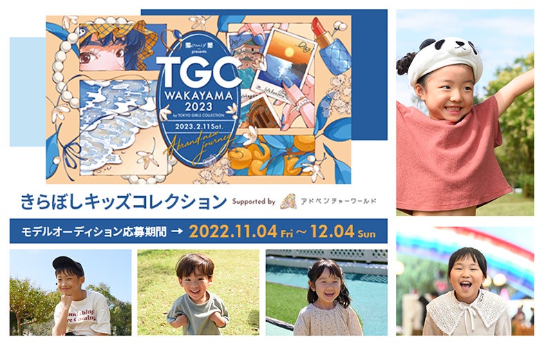 関西初上陸となるTGC 和歌山 2023の協賛ステージに出演していただくキッズモデルの募集を2022年11月4日(金)からスタートし、2次審査の公開オーディションをアドベンチャーワールドで開催します!
