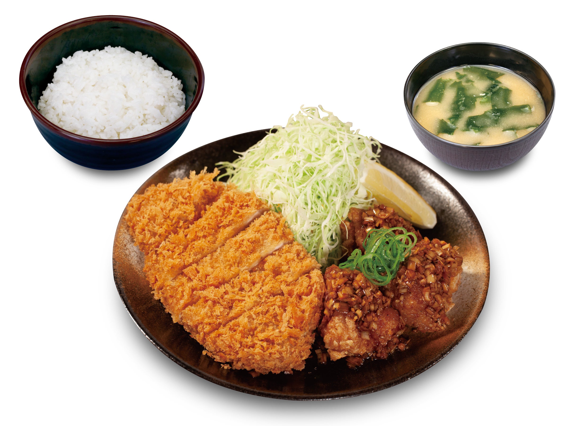 商品名 唐揚げ油淋鶏定食(5個) 890円 唐揚げ油淋鶏定食(8個) 1,160円 ロースかつ&唐揚げ油淋鶏定食(3個) 990円 ※お持ち帰りいただけます。お持ち帰りのみそ汁は、別途60円でお買い求めいただけます。 ※全て税込価格です。また、店内・お持ち帰りの税込価格は同一です。 ※株主優待券は上記全てのメニューにご使用いただけます。(単品は除きます。) ※「唐揚げ油淋鶏」販売期間中、「本格唐揚げ」関連商品は休止します。