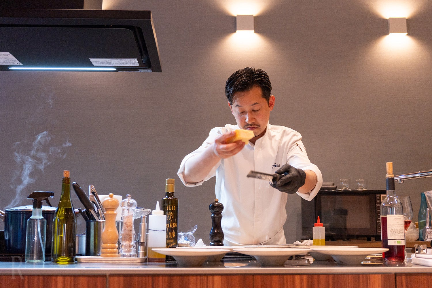 秩父の名店「HIMIDORI-陽みどり-」の黒澤大輔シェフが、お客様の目の前で調理から配膳までを手がけ、まるで“キッチンシアター”のような臨場感をお楽しみいただけます。
