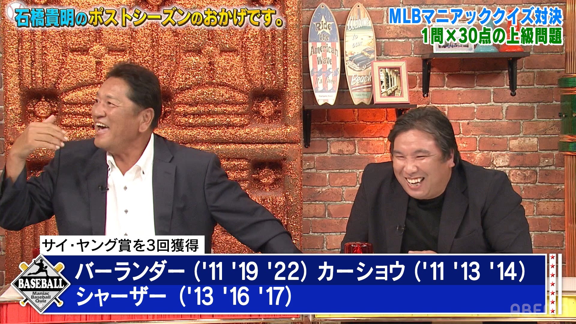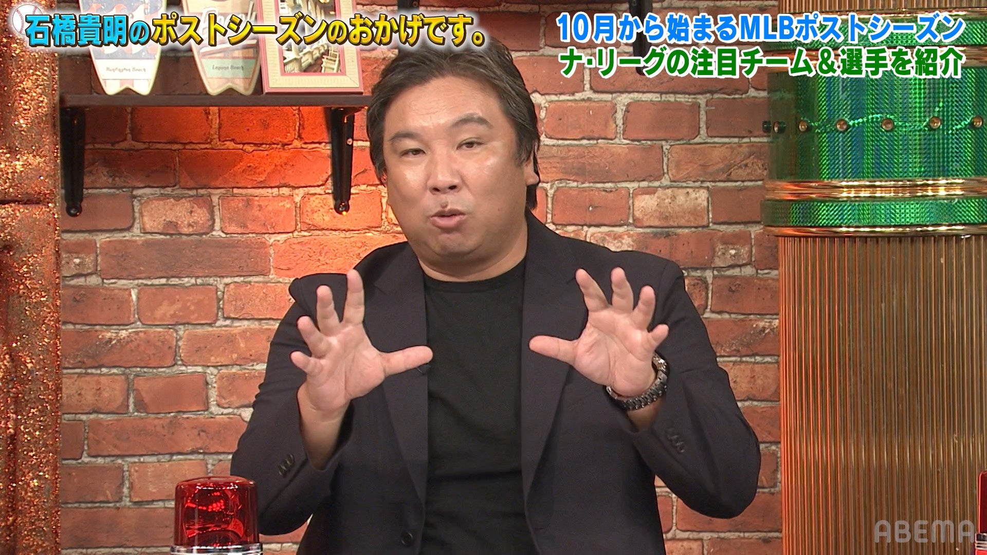MLBポストシーズンの覇者を石橋貴明、佐々木主浩、里崎智也が予想!/石橋へジャッジらMLBスターがラブコール『石橋貴明のポストシーズンのおかげです。』「ABEMA」で無料見逃し配信開始