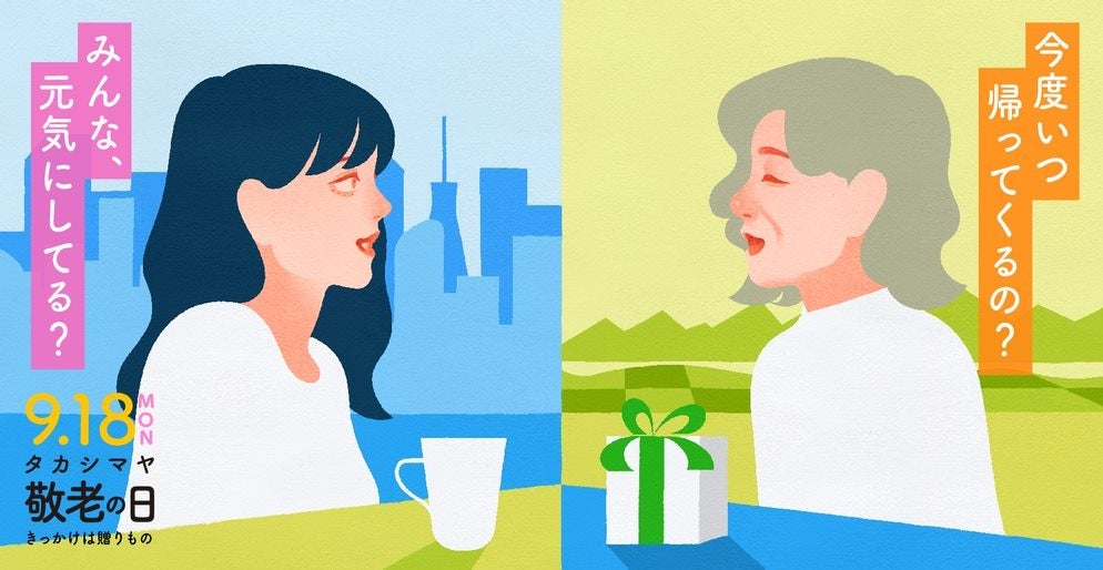 「敬老の日」に関するアンケート調査によると、離れて暮らす祖父母がいる20歳代の男女の約6割が「敬老の日をお祝いする習慣はない」との回答した結果から見受けられるように(トレンダーズ株式会社『となりのいろは』調べ/2022年調査実施)、「敬老の日」に祖父母へ感謝を伝えている若年層は少数派であることがうかがえます。一方で少子化の影響により「6ポケット」とも言われるように祖父母の愛情を受け、かわいがられて時間をすごしてきた若年層が多いことも見受けられます。そうしたなか、髙島屋オンラインストアでは、若年層を中心に人気を集めるイラストレーター・グラフィックデザイナーaka(赤)氏を起用し、かわいがってくれてお世話になっている大好きなおじいちゃん、おばあちゃんへ日頃の感謝を伝えるきっかけを提案するメッセージビジュアルを制作するとともに、「敬老の日」をきっかけに想いを伝えたり、一緒に楽しい時間を過ごすギフトなどを提案してまいります。
