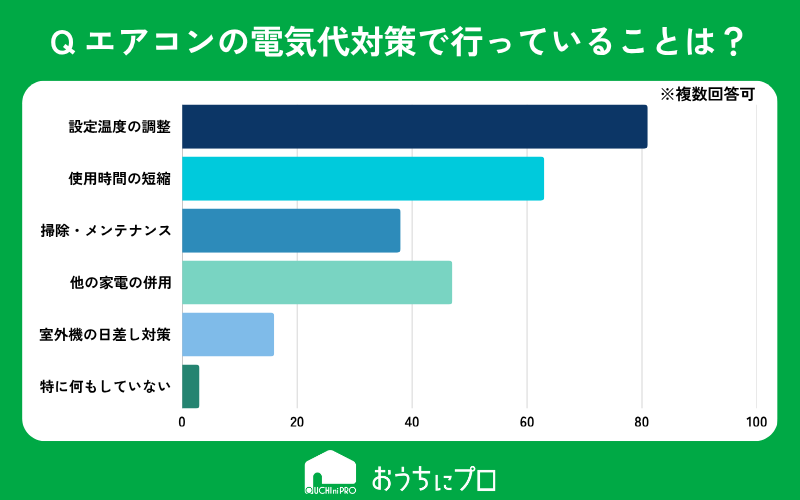 エアコンの電気代対策として行っていることは何ですか?(複数回答可能)