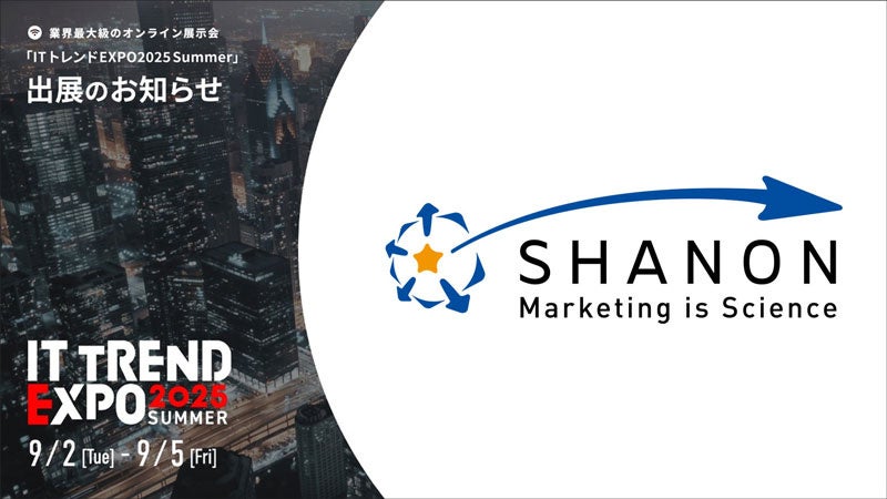 株式会社シャノン(本社:東京都港区、代表取締役CEO:山﨑 浩史、証券コード:3976、以下シャノン) は、この度、9月2日(火)から9月5日(金)に開催される「ITトレンドEXPO」に出展することをお知らせします。
