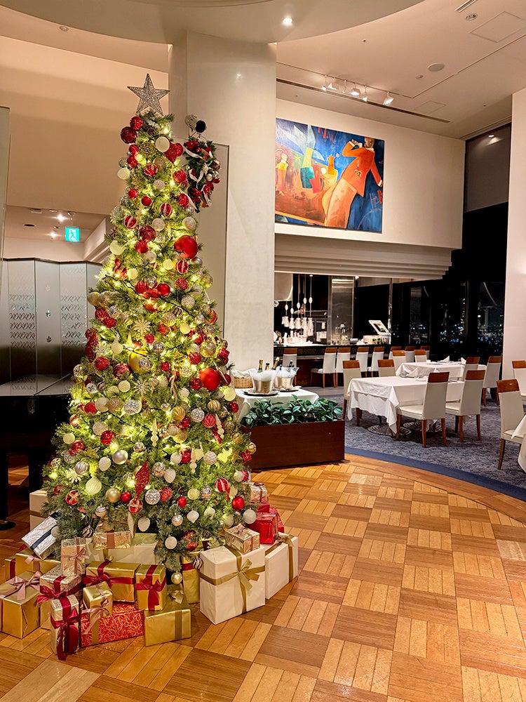 ロイヤルパインズホテル浦和19階にあるフレンチレストラン「RPR」では煌びやかなガーランドと赤とシルバーを基調としたクリスマスツリーがお出迎え。ライトアップしたクリスマスツリーとともに19Fからの夜景をお楽しみいただけます。